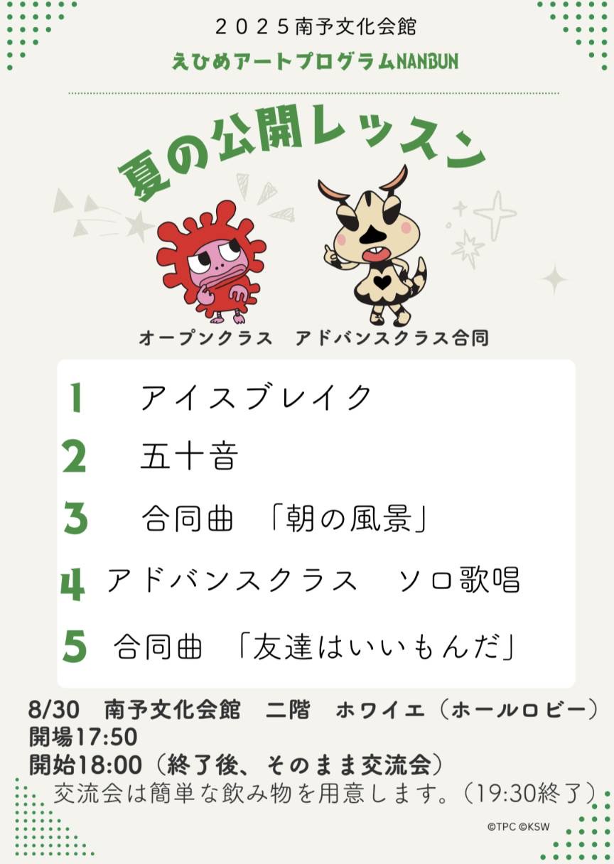 《えひめアートプログラムNANBUN》夏の公開レッスンを開催します。
